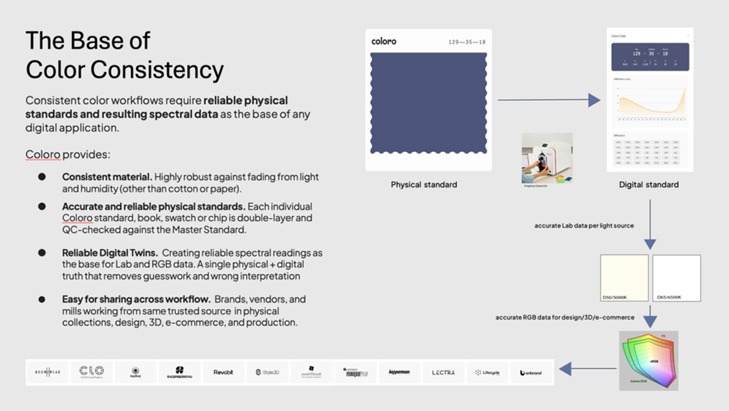 KISCO’s partnership with Coloro now means that when designers and brands search for colors using the Coloro system, they are provided with precise guidance on which KISCO dyes to use to achieve those colors on both cotton and synthetic fabrics. This integration connects Coloro’s advanced color data with KISCO’s proven dye formulations, enabling fast, reliable color development and production across the global textile supply chain.